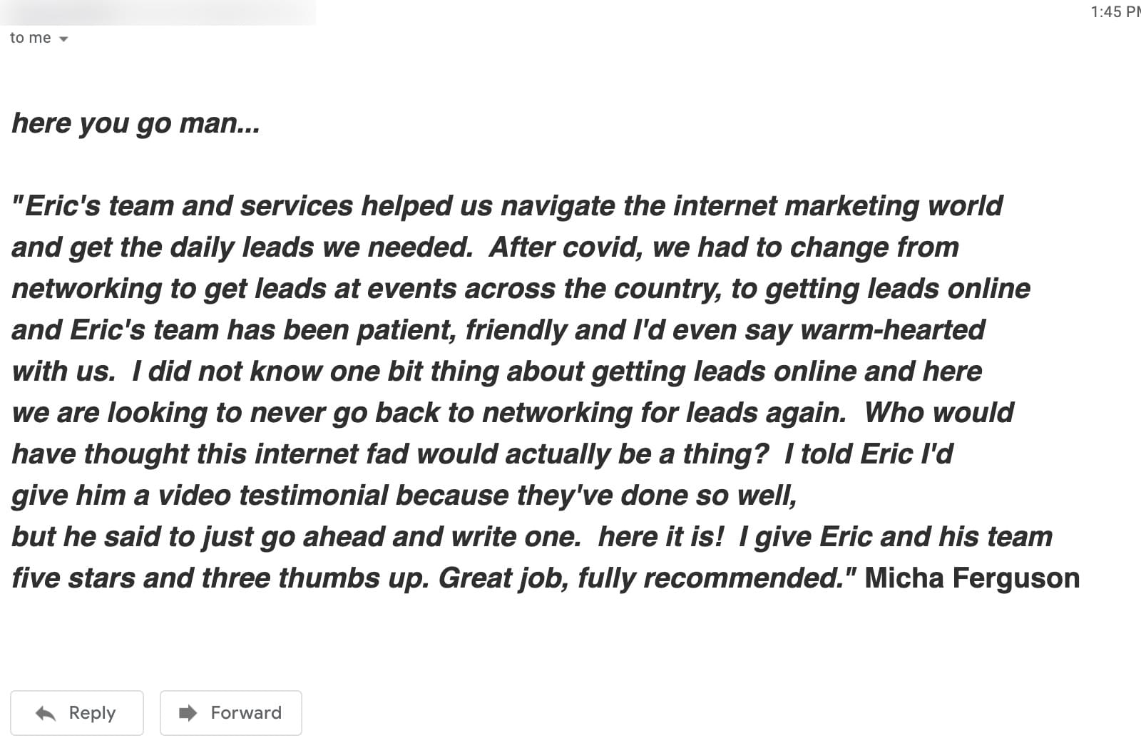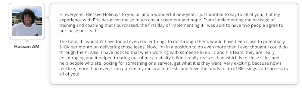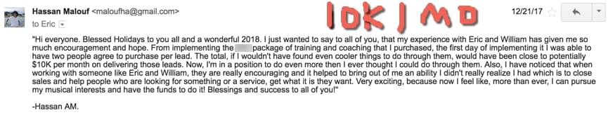 We cannot guarantee you the same exact results. Every business is different, some more attractive to customers than others. We don't know your business or situation or you (yet) and we make no promises you'll earn a dime. In fact, you could lose all your money or fail miserably. I'd hate for that to happen, so let's work as a team and master this for you like we've done for ourselves and many-many others. My point is we cannot legally guarantee a thing with today's laws... but boy do I want to!